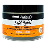 Be smooth and in control! You can create sleek braids, twists, locs, and protective styles with Aunt Jackie’s Curls & Coils Braid + Twist Collection Hold Tight! Braid & Twist Gel with Extra Firm Hold. Specially blended with the dynamic duo of Biotin and Honey, this extra firm hold gel allows you to enjoy neat, smooth styles with beautiful shine, while helping to strengthen, lengthen, and protect hair. Lavish Honey supports moisture retention, while protein-rich Biotin reveals the natural beauty of braids, twists, and locs.