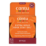 - CANTU EXTRA HOLD EDGE STAY GEL conditions and smoothens frizz and flyaways for shiny, sleek styles that last.