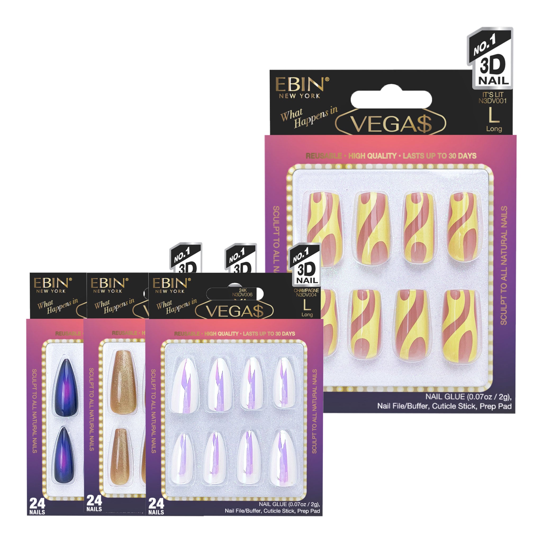 PREMIUM QUALITY - Crafted from top-tier materials, What Happens In Vegas press-on nails are both safe and durable. The high-quality materials ensure that your nails maintain their stunning appearance throughout wear. Includes 24 nails, glue, nail file, prep pad, and a cuticle stick. Easy and quick application and removal without the hassle