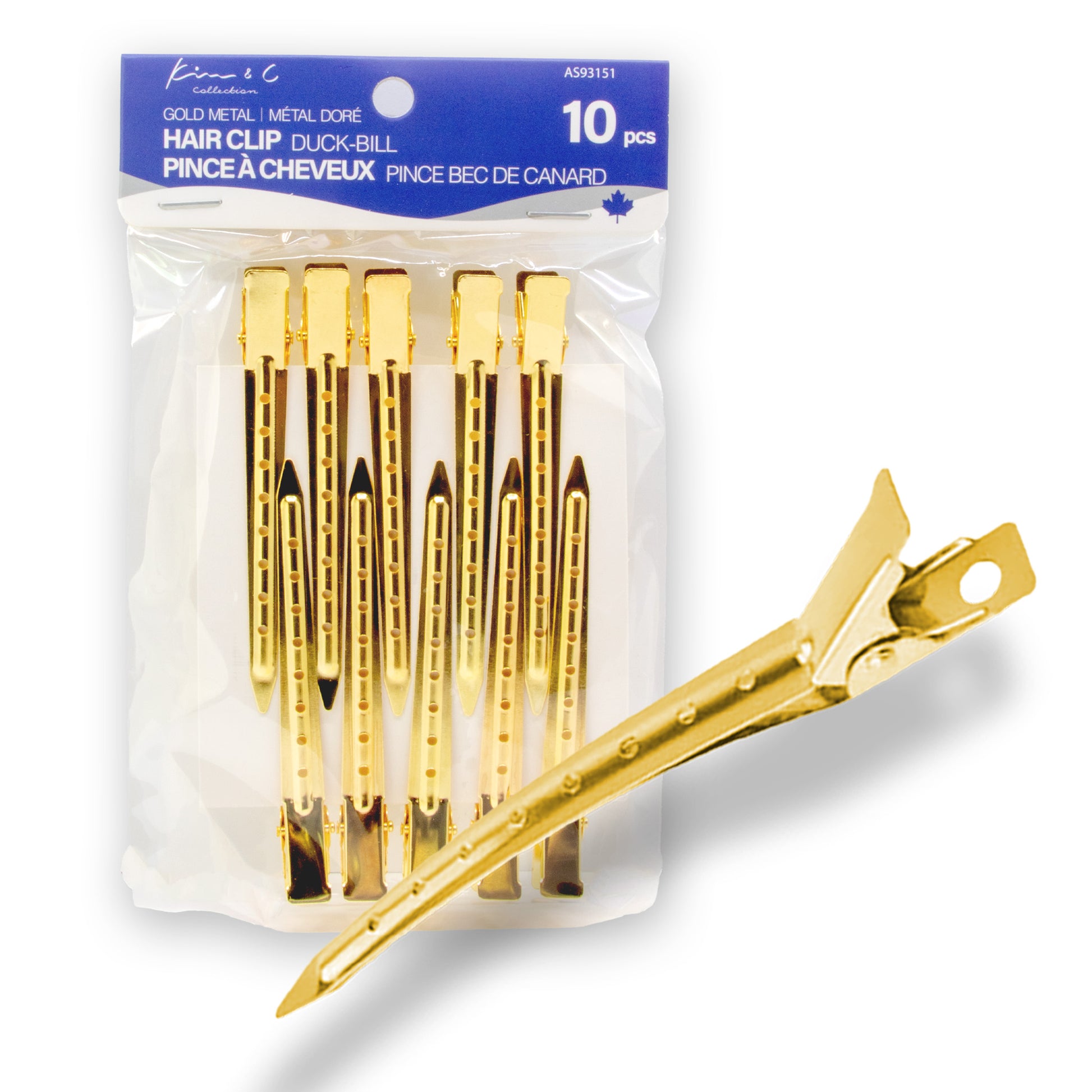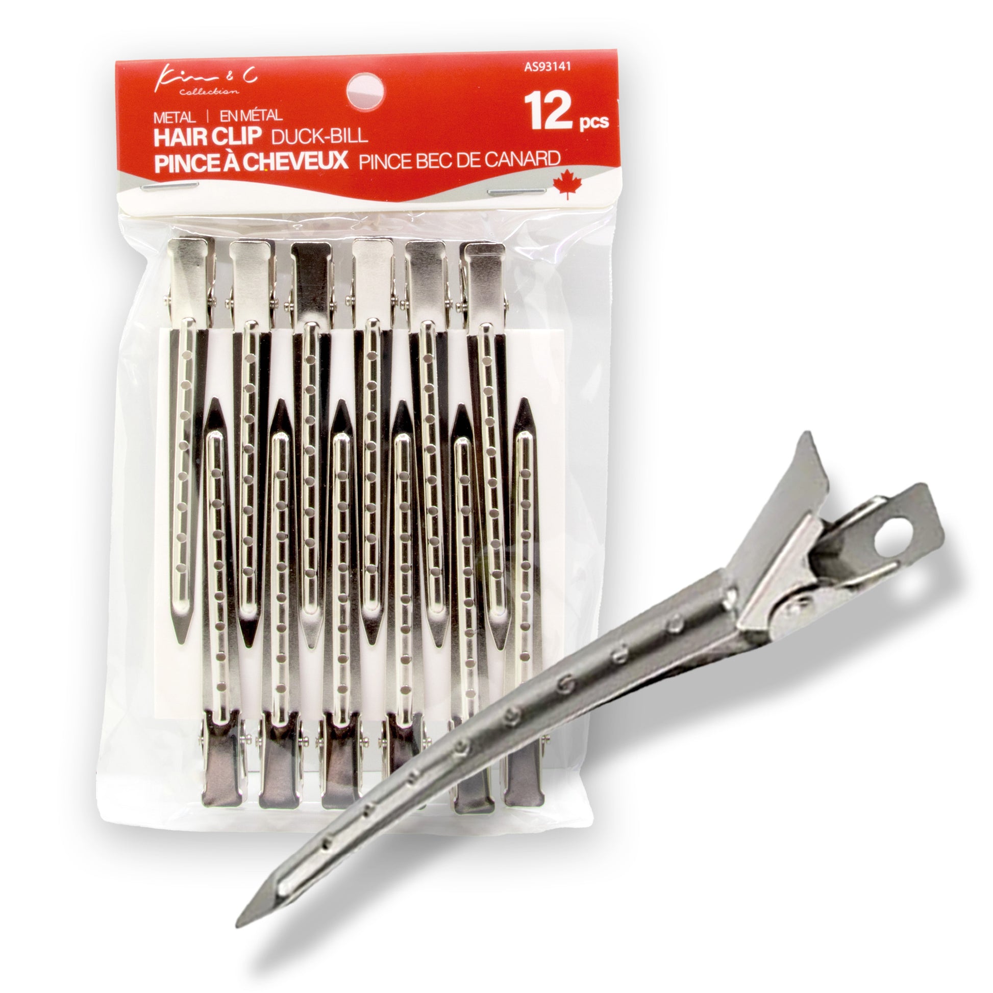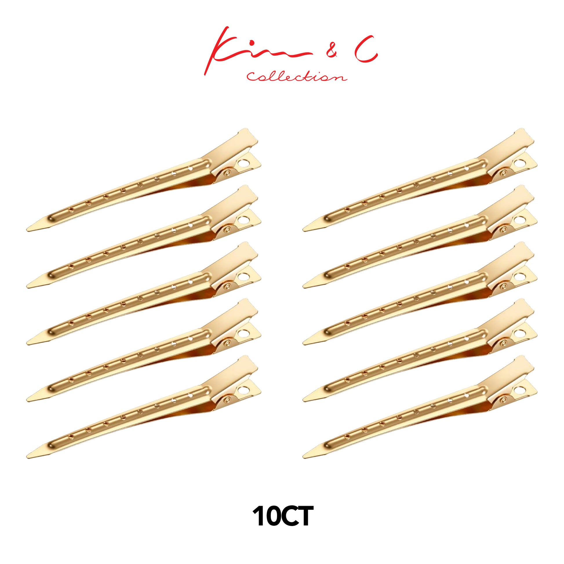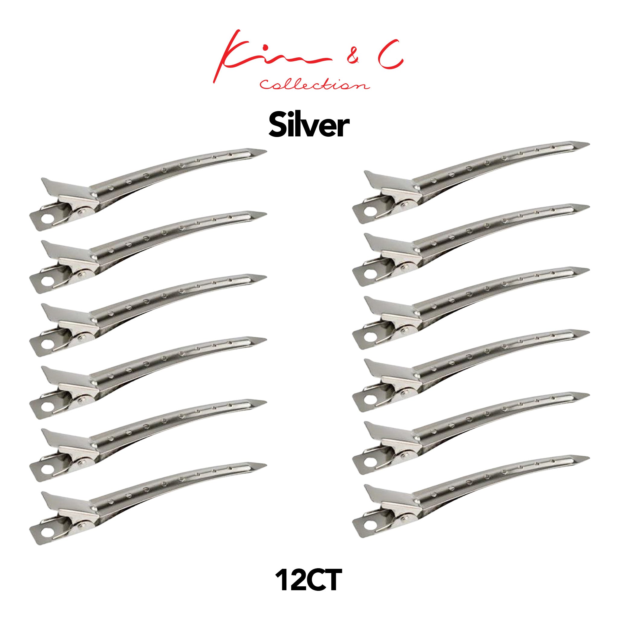 Kim & C Duck-Bill Hair Clips are durable, lightweight metal clips designed for clean sectioning and secure hold during styling, cutting, blow-drying, braiding, or color application. Their smooth, extended beak design grips hair firmly without snagging, making them ideal for both salon professionals and at-home styling.