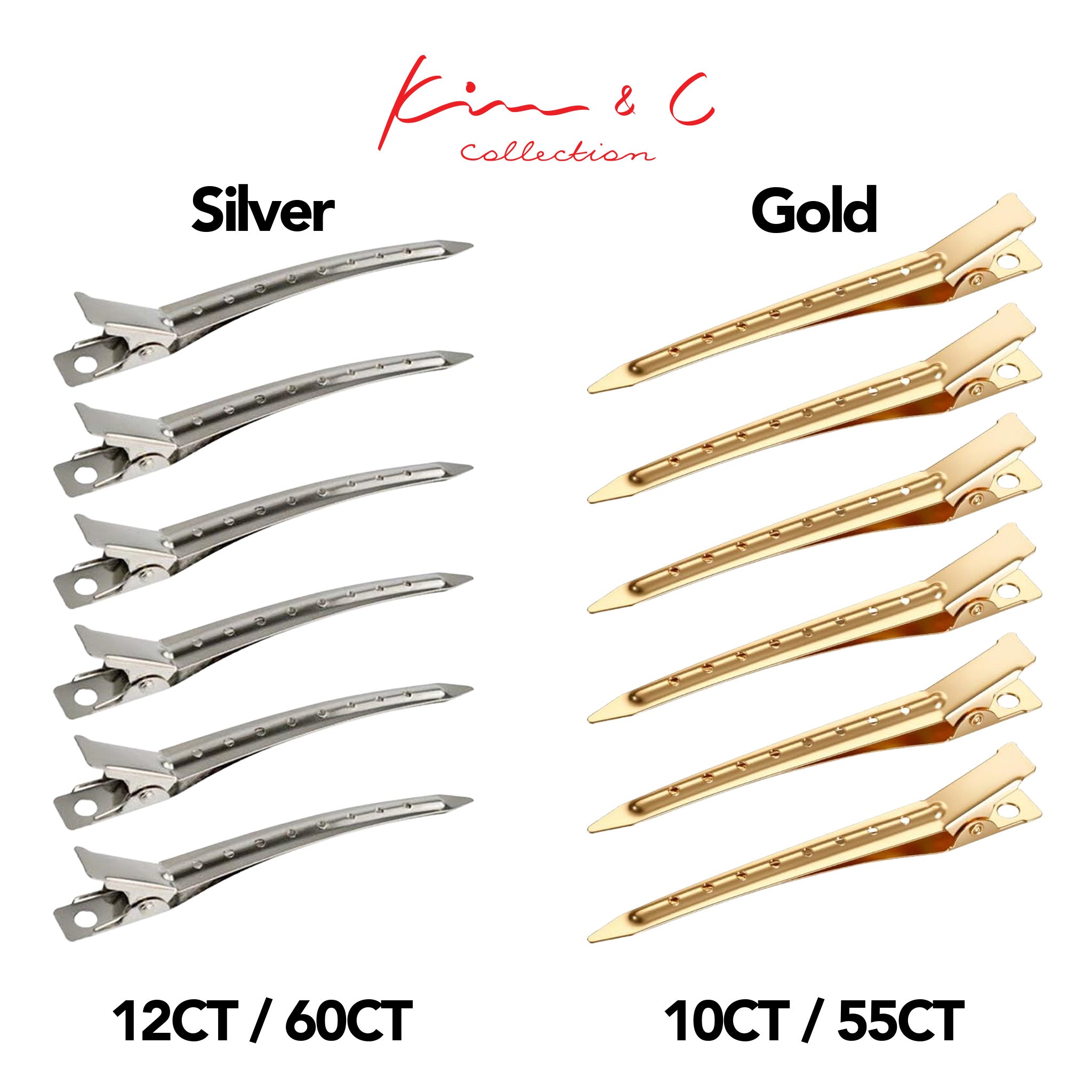 Use silver clips for versatile everyday salon use and gold for a premium, easy-to-spot finish during detailed styling.