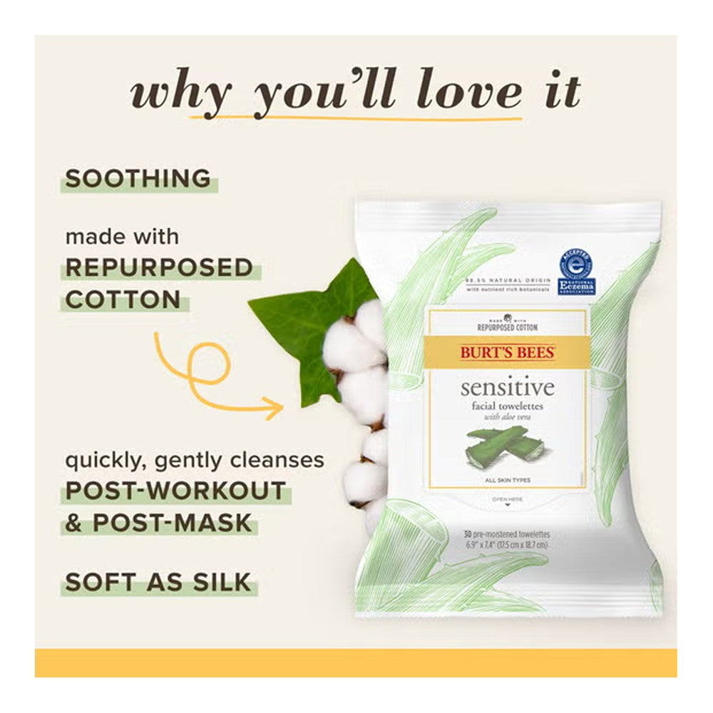 EASY TO USE: Gently wipe your face with Burt’s Bees® Sensitive Facial Towelettes to remove dirt and makeup and leave your sensitive skin feeling soft and clean