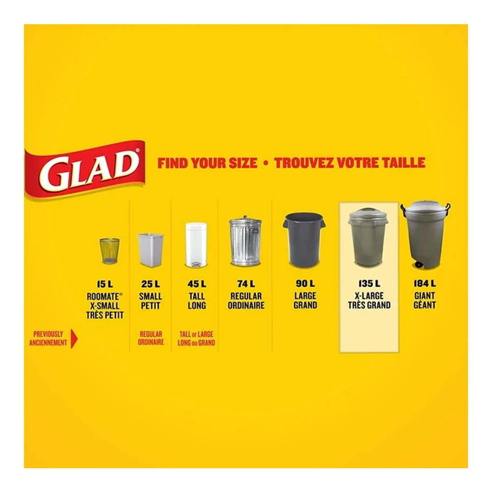 Count on GLAD bags to measure up to the task. Strong and sturdy, they help you avoid the messiest garbage disasters. And with the Easy-Tie® flaps you just tie, grab, toss, and you’re done. GLAD. Guaranteed Strong