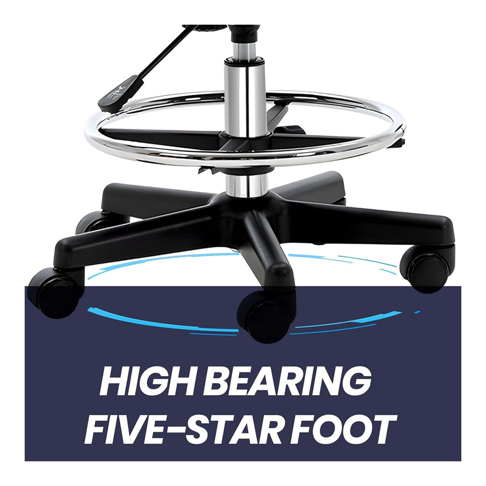 Place on a flat, stable surface. Rotate the seat freely and use back and foot rests as needed during long shifts. Wipe clean regularly to maintain hygiene and appearance.