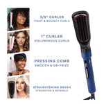 Elevate your hair game effortlessly with the Hot & Hotter 4-in-1 Ceramic Ionic Digital Interchangeable Hair Styler, your ultimate go-to for attainting any look and style. Imagine having a tool that combines four must-have styling essentials in one sleek, compact design: a 3/8” curler for tight, bouncy curls, a 1” curler for voluminous waves, a pressing comb for that smooth, detangled finish, and a straightening brush for sleek, straight locks. Each attachment features a ceramic coating to keep frizz at bay and boost shine, ensuring your hair looks fabulous every single time.