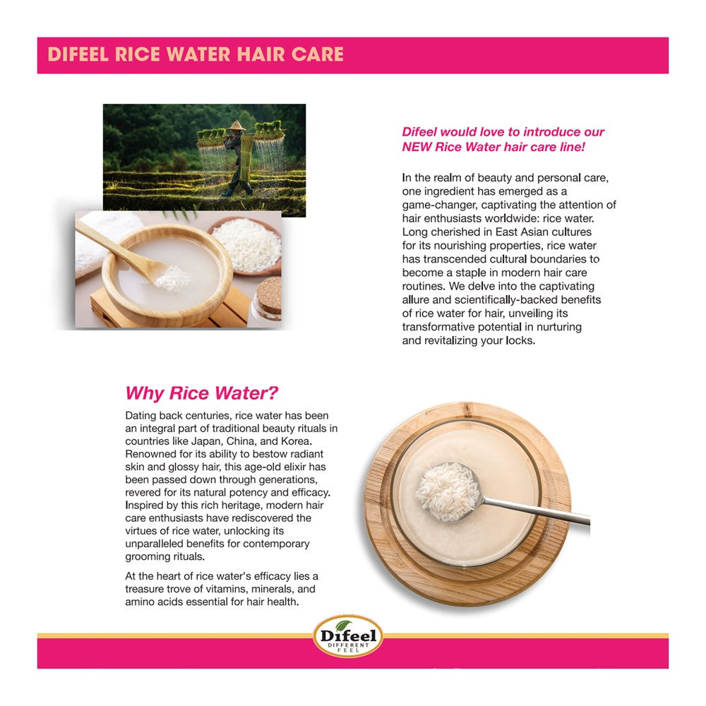 Ideal for all hair types, Difeel Rice Water Hair Oil enhances manageability, leaving your hair resilient, silky, and beautifully conditioned. Embrace the power of rice bran oil and experience stronger, healthier hair with every use.