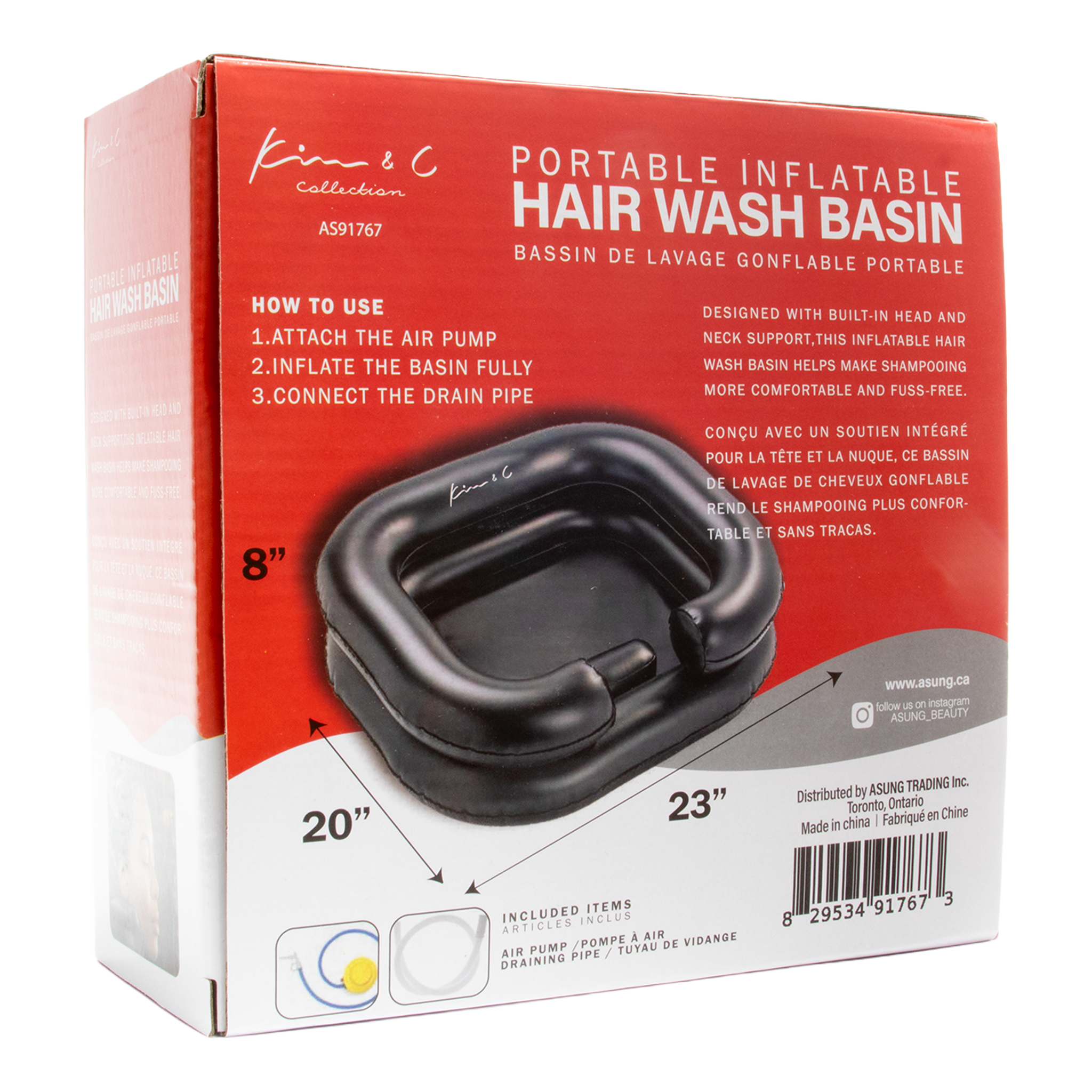 Kim & C Portable Inflatable Hair Wash Basin is designed for easy and comfortable hair washing anywhere. With a built-in head and neck support, it provides a relaxing experience while minimizing mess. Perfect for home use, salon services, or caregiving situations.