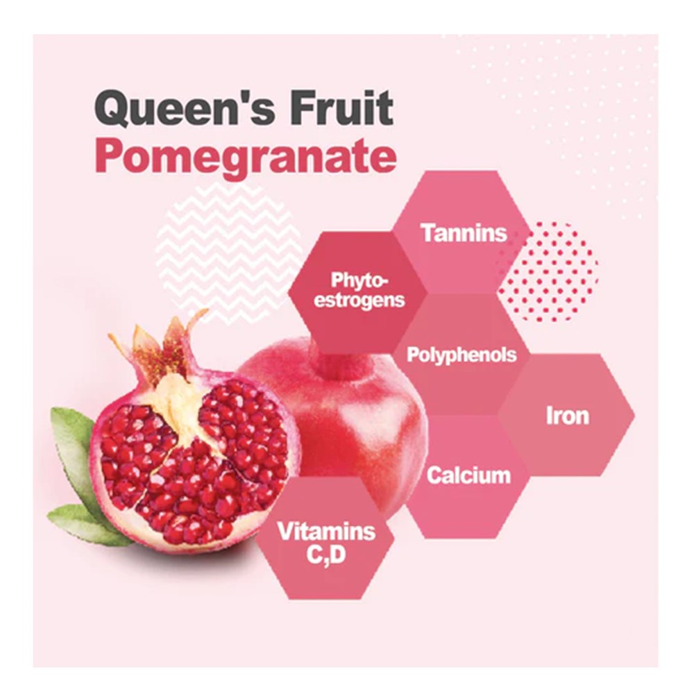 Contains antioxidants and cosmetic ingredients: pomegranate, red cherry, hibiscus flower, herbal extract, berries, apple.